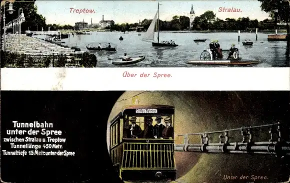 Ak Berlin Treptow, Boote, Tunnelbahn unter der Spree, Stralau