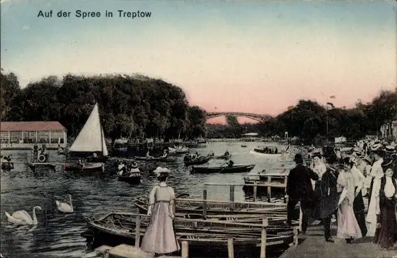 Ak Berlin Treptow, Bootsanleger an der Spree