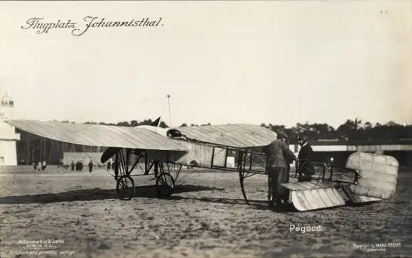Ak Berlin Treptow Johannisthal, Partie am Flugplatz, Flugzeug, Sanke, Adolphe Pégoud