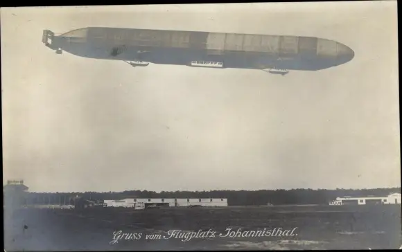 Ak Berlin Treptow Johannisthal, Zeppelin Luftschiff LZ 10 Schwaben über dem Flugplatz