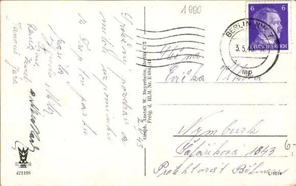 Zustand, siehe Scan, gelaufen, 1943 - ca 14 cm X 9 cm