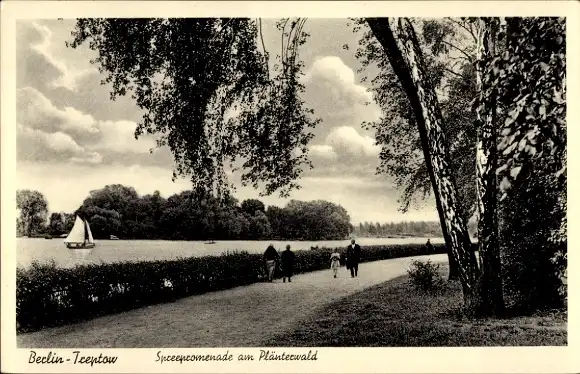 Ak Berlin Treptow, Spreepromenade am Plänterwald