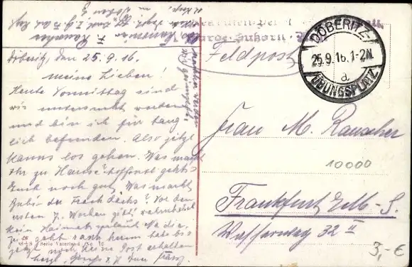 Zustand, siehe Scan, gelaufen, 1916 - ca 14 cm X 9 cm