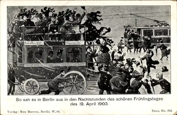 Ak Berlin, Unwetter 19. April 1903, Straßenpartie, Omnibus, Straßenbahn