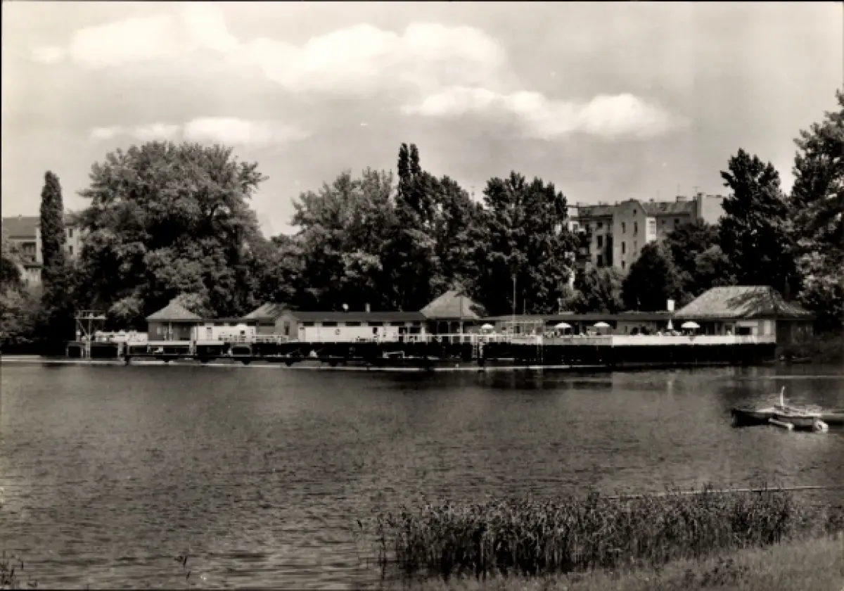 Ansichtskarte, Postkarte, Badeanstalt, Schwimmbad, Freibad, Strandbad, Volksbad