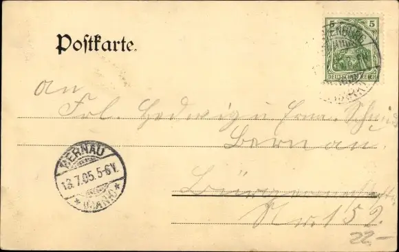 Zustand, siehe Scan, gelaufen, 1905 - ca 14 cm X 9 cm