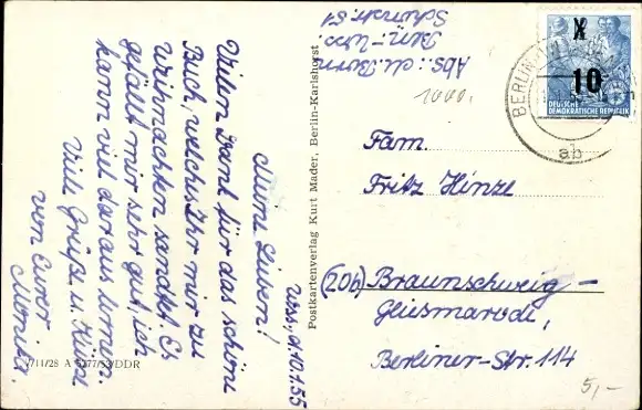 Zustand, siehe Scan, gelaufen, 1955 - ca 14 cm X 9 cm