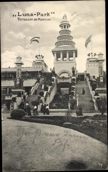 Ak Berlin Wilmersdorf Halensee, Luna Park, Terrassen am Halensee