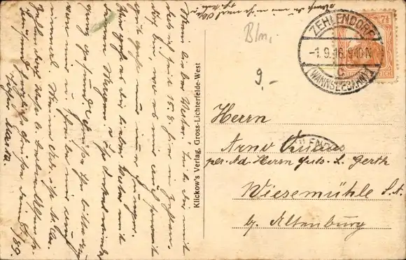 Zustand, siehe Scan, gelaufen, 1916 - ca 14 cm X 9 cm