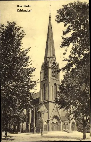 Ak Berlin Zehlendorf, Neue Kirche, Straßenansicht