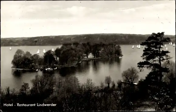 Ak Berlin Zehlendorf Nikolassee, Insel Lindwerder, Havel, Hotel Restaurant Lindwerder