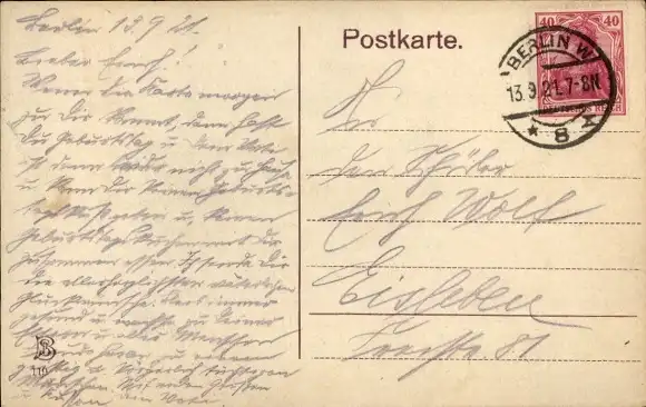 Zustand, siehe Scan, gelaufen, 1921 - ca 14 cm X 9 cm