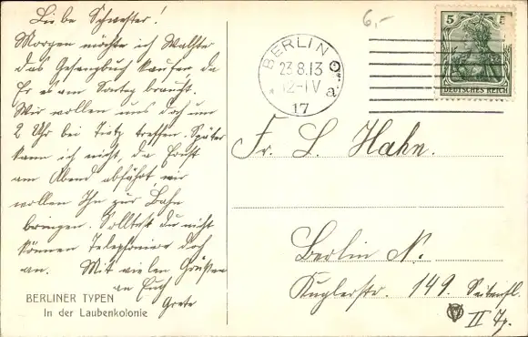 Zustand, siehe Scan, gelaufen, 1913 - ca 14 cm X 9 cm