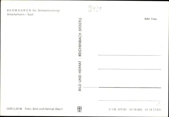 Ak Bermsgrün Schwarzenberg im Erzgebirge, Arbeiterheim, Saal