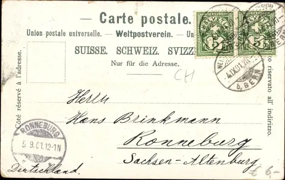 gelaufen 1901, Albumspuren, Ecken bestoßen, Abriebspur, sonst guter Zustand