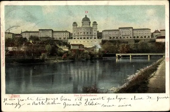 Ak Bern Schweiz, Bundeshaus, Brücke