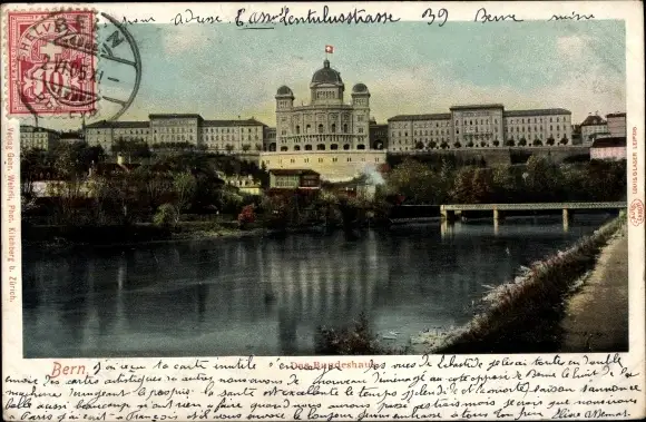 Ak Bern Schweiz, Bundeshaus, Brücke