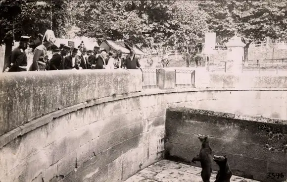 Ak Bern Stadt Kanton Bern, Berg Gurten, Ein Bär steht in einem Gehege. Mehrere Menschen schaue...