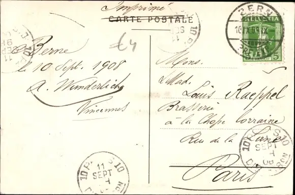 Zustand, siehe Scan, gelaufen, 1908 - ca 14 cm X 9 cm