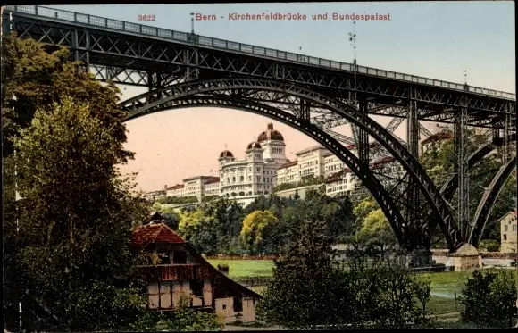 Ak Bern Stadt, Kirchenfeldbrücke und Bundespalast