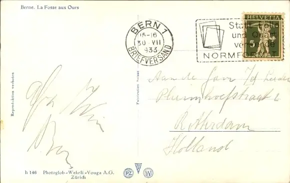Zustand, siehe Scan, gelaufen, 1933 - ca 14 cm X 9 cm