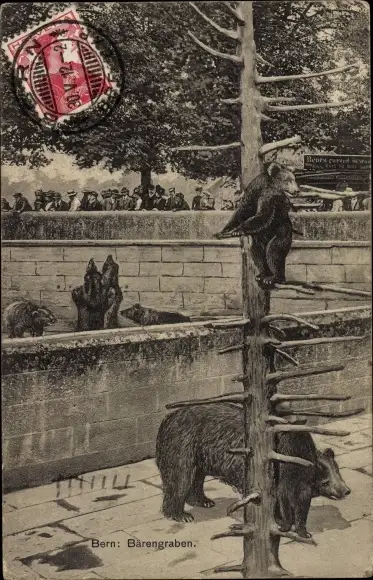 Ak Bern Stadt Schweiz, Bärengraben, Braunbären