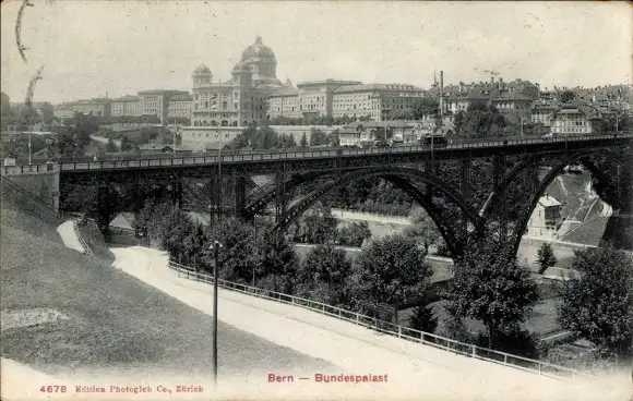Ak Bern Stadt Schweiz, Bundespalast, Viadukt