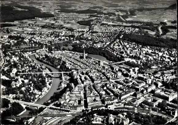 Ak Bern Stadt Schweiz, Gesamtansicht, Fliegeraufnahme