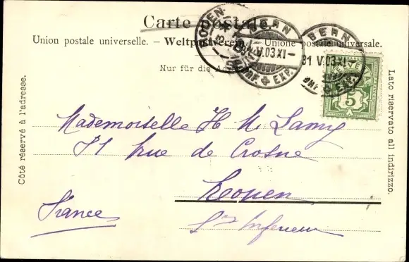 Zustand, siehe Scan, gelaufen, 1903 - ca 14 cm X 9 cm