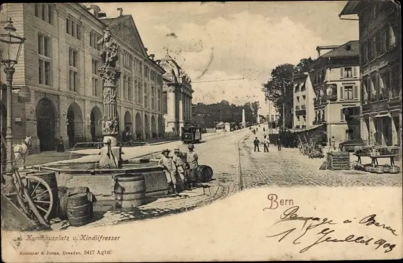 Ak Bern Stadt Schweiz, Hornhausplatz, Kindlifresser, Brunnen