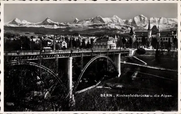 Ak Bern Stadt Schweiz, Kirchenfeldbrücke, Alpen