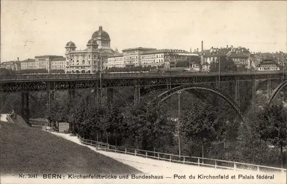 Ak Bern Stadt Schweiz, Kirchenfeldbrücke, Bundeshaus