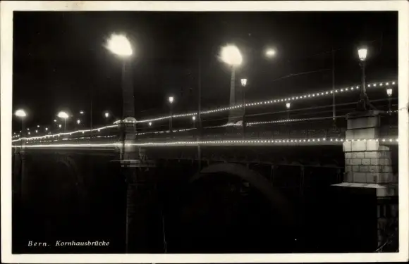 Ak Bern Stadt Schweiz, Kornhausbrücke, Nachtansicht