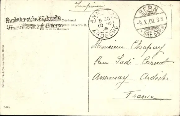 Ak Bern Stadt Schweiz, Monument de l'Union postale universelle