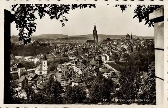 Ak Bern Stadt Schweiz, Panorama, Blick vom Rosengarten