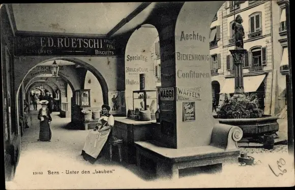 Ak Bern Stadt Schweiz, Unter den Lauben, Geschäft Ed. Rüetschi, Reklameschilder, Maggi