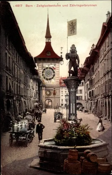 Ak Bern Stadt, Zeitglockenturm und Zähringerbrunnen