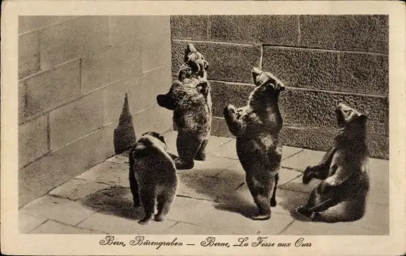 Ak Bern Stadt, Zoologischer Garten, Vier Braunbären in einem Gehege