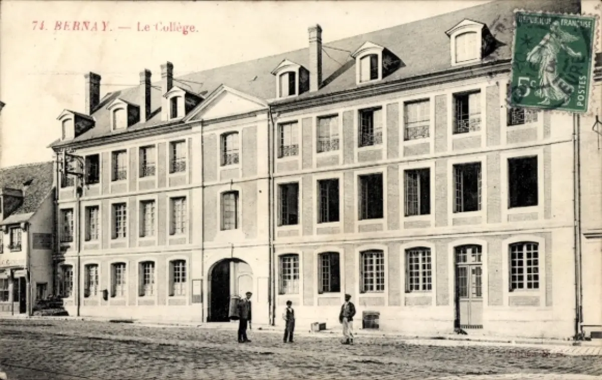 Ak Bernay Eure, Le Collège, Architektur, Straßenansicht, Menschen, Poststempel
