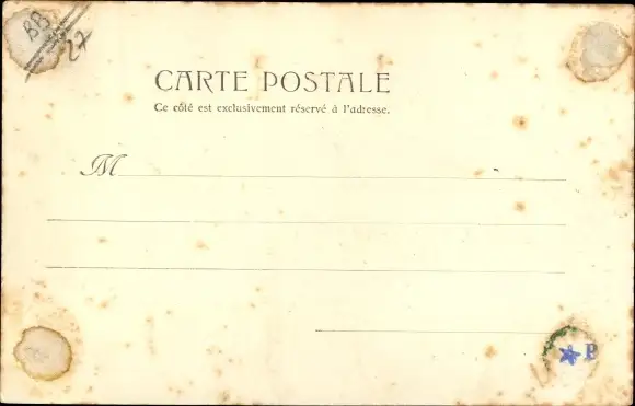 ungelaufen, rückseitig Klebereste, fleckig, sonst guter Zustand