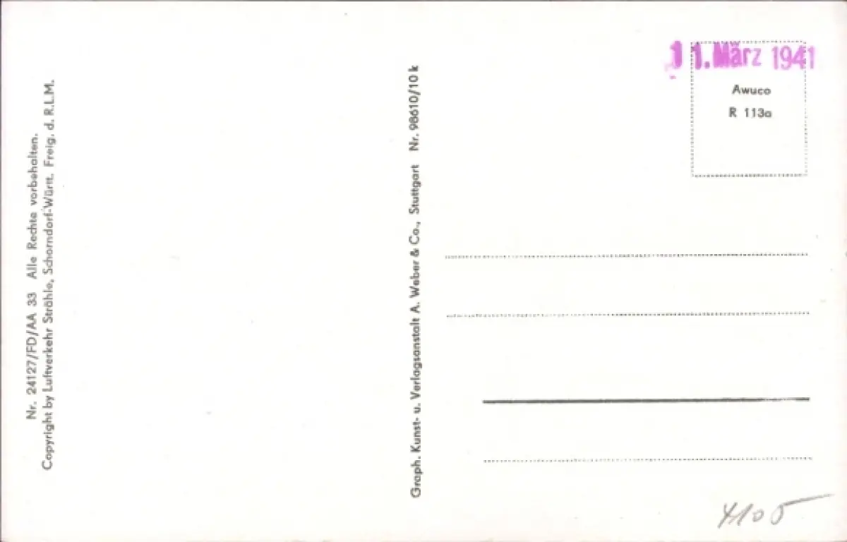 Zustand siehe Scan, ungelaufen, 1941 - ca 14 cm X 9 cm