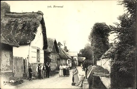 Ak Berneval Seine Maritime, Straßenpartie, Häuser, Anwohner