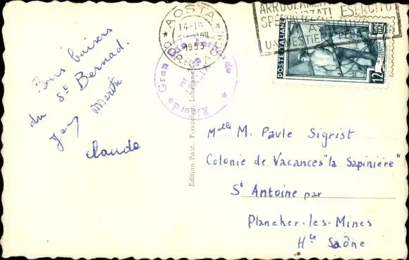 Zustand, siehe Scan, gelaufen, 1953 - ca 14 cm X 9 cm