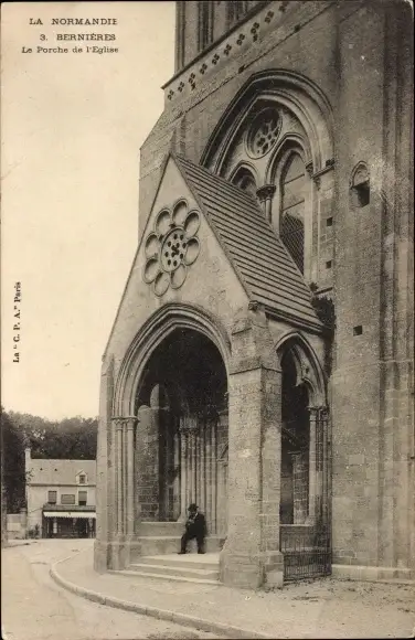 Ak Bernieres Calvados, Le Porche de l'Eglise
