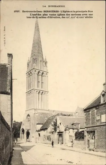 Ak Bernieres sur Mer Calvados, L'Eglise et la principale Rue