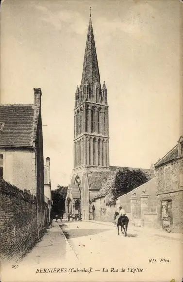 Ak Bernieres sur Mer Calvados, La Rue de l'Eglise