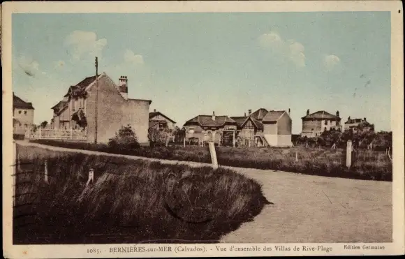 Ak Bernières sur Mer Calvados, Vue d'ensemble des Villas de Rive Plage