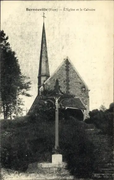 Ak Bernouville Eure, L'Eglise, Le Calvaire