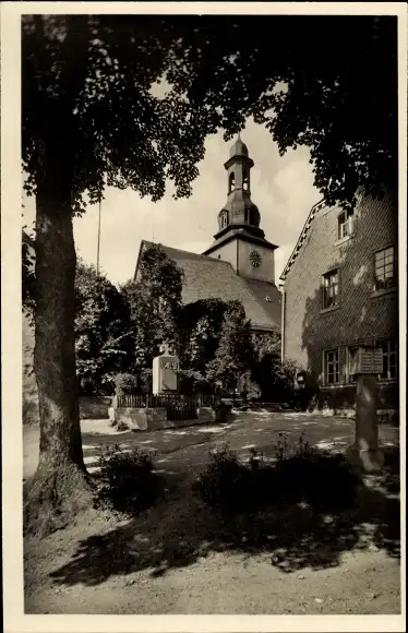Ak Bernstein Schwarzenbach am Wald in Oberfranken, Durchblick zur Kirche