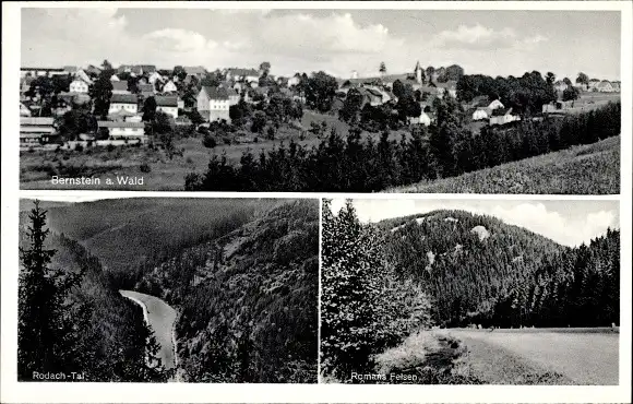 Ak Bernstein Schwarzenbach am Wald in Oberfranken, Rodach Tal, Romans Felsen, Panorama